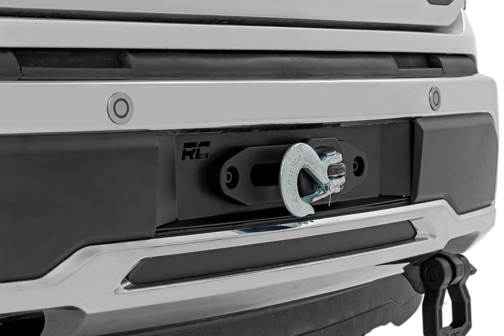 Hidden Strength, Factory-Fit Appearance: Upgrade your Ford F-150 with Rough Country's Hidden Winch Mount Kit, combining rugged durability, stealthy design, and clean, factory-style integration. Perfect for off-road recovery without compromising your truck's sleek look.Stealthy Winch Integration: Engineered for Rough Country's PRO9500S and PRO12000S winches, this mount hides your winch behind the factory bumper cover, maintaining a low-profile, streamlined appearance while delivering serious recovery capability.Convenient Control Access: The included winch control extension harness ensures easy, flexible operation from a convenient location, giving you full control over your winch in any situation.Effortless Installation: Bolt-on structural design simplifies setup, with only minor trimming required for the fairlead and D-ring mounts, letting you hit the trails faster with a secure, factory-style fit.Trail-Ready Strength: Crafted from heavy-duty 7-gauge steel, this mount provides maximum support and durability, combining stealth, strength, and functionality for the ultimate off-road performance on your F-150.