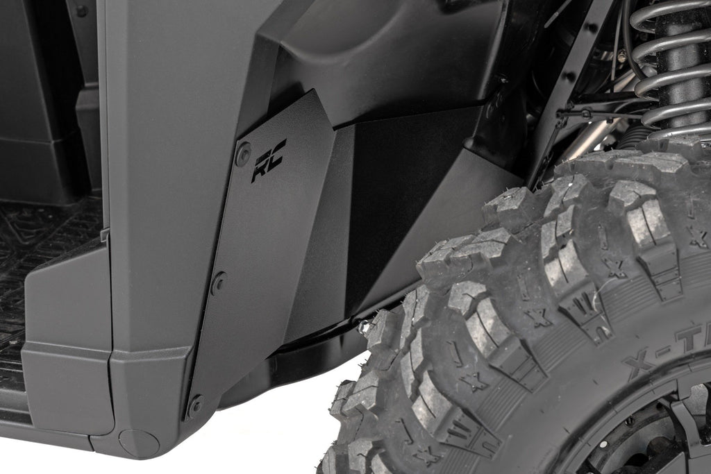 Built Tough for Any Trail: Take your Polaris Ranger XP 1000 to the next level with our 14-gauge steel inner fender guards. Designed for ultimate strength and durability, these guards protect your UTV from rocks, sticks, and trail debris that can penetrate your factory plastic firewall.Bolt-On Convenience: Installation is a breeze with the simple bolt-on design, securing directly to your frame for rock-solid stability. No complicated modifications, just a clean, secure fit that stays in place.Trail-Ready Compatibility: Engineered to work seamlessly with both factory and forward offset control arms, these fender guards won't limit your tire size, giving you the freedom to run the setup you want.Upgrade Your Protection: Don't settle for fragile plastic. Equip your Ranger with these inner fender guards and enjoy added peace of mind on every off-road adventure. Strong, reliable, and made for Polaris enthusiasts who demand the best.