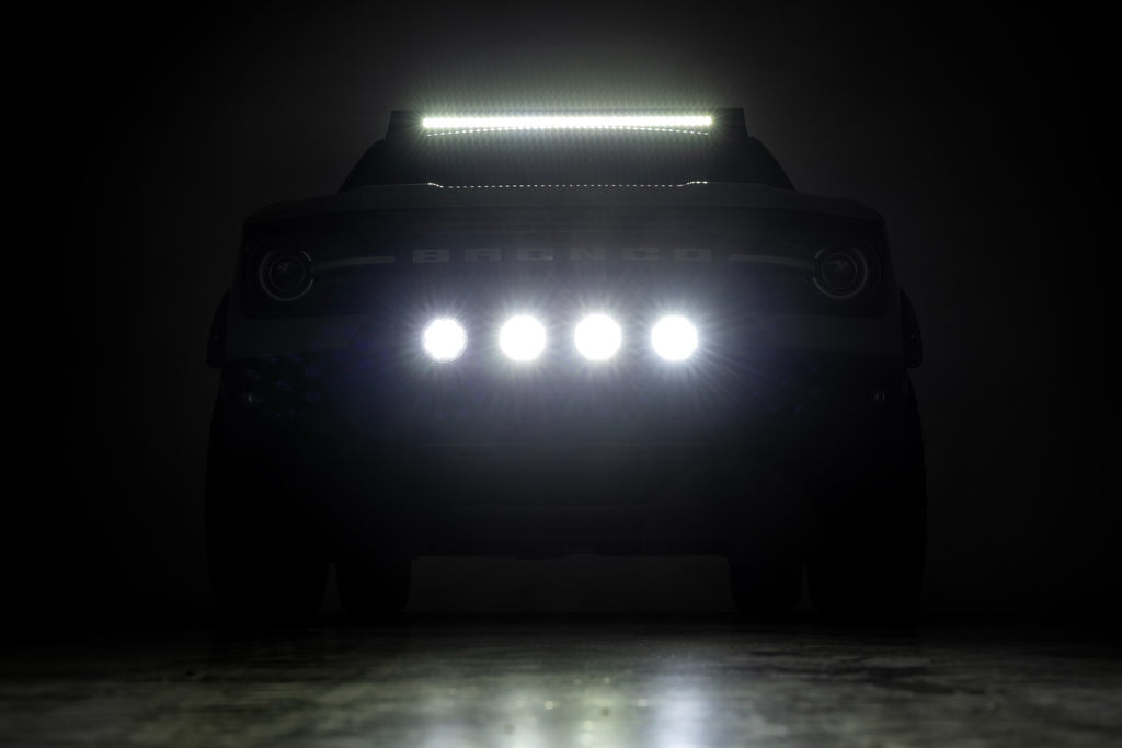 Tough Protection, Bold Style: Outfit your Ford Bronco Sport with Rough Country's Nudge Bar for the ultimate blend of strength and style. Crafted from durable 2-inch tubular steel, this bull bar adds a rugged layer of front-end protection while giving your SUV a commanding look on or off the trail. Installation Notice: This Nudge Bar requires cutting and drilling for proper installation. With careful attention and standard tools, you can achieve a secure, custom fit that enhances both protection and appearance. Built to Last: Finished in a corrosion-resistant black powder coat, this Nudge Bar is engineered to withstand the elements and maintain its sleek appearance for years of use. Lighting Ready: Take on the night with multiple lighting options to suit your needs. Choose from a 20" Black Series LED Light Bar (7200 lumens), a 20" Spectrum Series Light Bar (24,300 lumens), or four 4" round LED lights (8640 lumens). Each lighting setup includes a durable, die-cast aluminum housing and a waterproof, braided wiring harness for reliable all-weather performance. Reliable Coverage: The Nudge Bar is backed by Rough Country's 5-year limited warranty, and all lighting options include a 3-year limited warranty for added peace of mind.