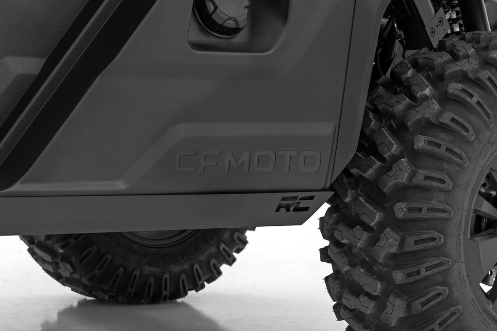 Upgrade your off-road experience with the Rocker Guard Kit for the CFMOTO UFORCE U10 Pro. Crafted from high-strength 11 GA steel, this solid 1-piece design offers unbeatable protection against rocks, debris, and rough terrain. Whether you're tackling rock crawling or trail riding, this rock slider is built to handle the toughest conditions.Easy Bolt-On Installation: No welding required, get back on the trails faster with a simple bolt-on installation.Heavy-Duty Construction: Built from solid 11 GA steel for superior strength and durability.Sleek & Functional Design: Enhances the rugged look of your UFORCE U10 Pro while offering ultimate rocker panel protection.Powder-Coated Finish: Features a corrosion-resistant, durable finish that stands up to harsh weather conditions and rugged use.Precision Fit: Custom-designed for the CFMOTO UFORCE U10 Pro, ensuring a perfect, secure fit.Built for All-Weather Performance: Engineered to withstand extreme temperatures, mud, water, and rough terrain.Perfect for adventurers looking for reliable, high-performance protection, this rock slider is a must-have upgrade for your CFMOTO. Ready to install and built to last, it's the ultimate solution for off-road enthusiasts who demand both form and function.