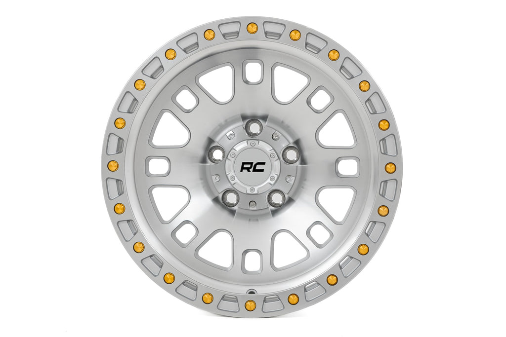 If your stock wheels are holding you back and lack the rugged style you crave, the Rough Country 82 Series Machined Wheel is your perfect upgrade. This powerhouse combines bold styling with premium performance to dominate the trail and turn heads everywhere you roll.8-Spoke Single-Piece Aluminum Construction: Crafted from lightweight yet high-strength aluminum, these wheels are engineered to withstand punishing off-road conditions without adding unnecessary weight.Premium Full Machined Finish: Precision-machined for a sleek, polished look, the 82 Series delivers a striking appearance that stands out both on the street and in the dirt.Aggressive Simulated Beadlock Design: Gold accent hardware enhances the wheel's rugged edge, giving your ride a bold, off-road-ready stance.Custom RC Center Cap: Each wheel includes a matching machined Rough Country center cap with bold black RC lettering for a clean branded touch.Warranty: Backed by a 1-year finish warranty and a Limited Lifetime Structural Warranty, you can ride with complete confidence knowing your investment is protected.The 82 Series Machined Wheel is the ultimate upgrade for off-roaders who demand durability, style, and performance. Ditch those plain stock wheels and take your ride to the next level with Rough Country.